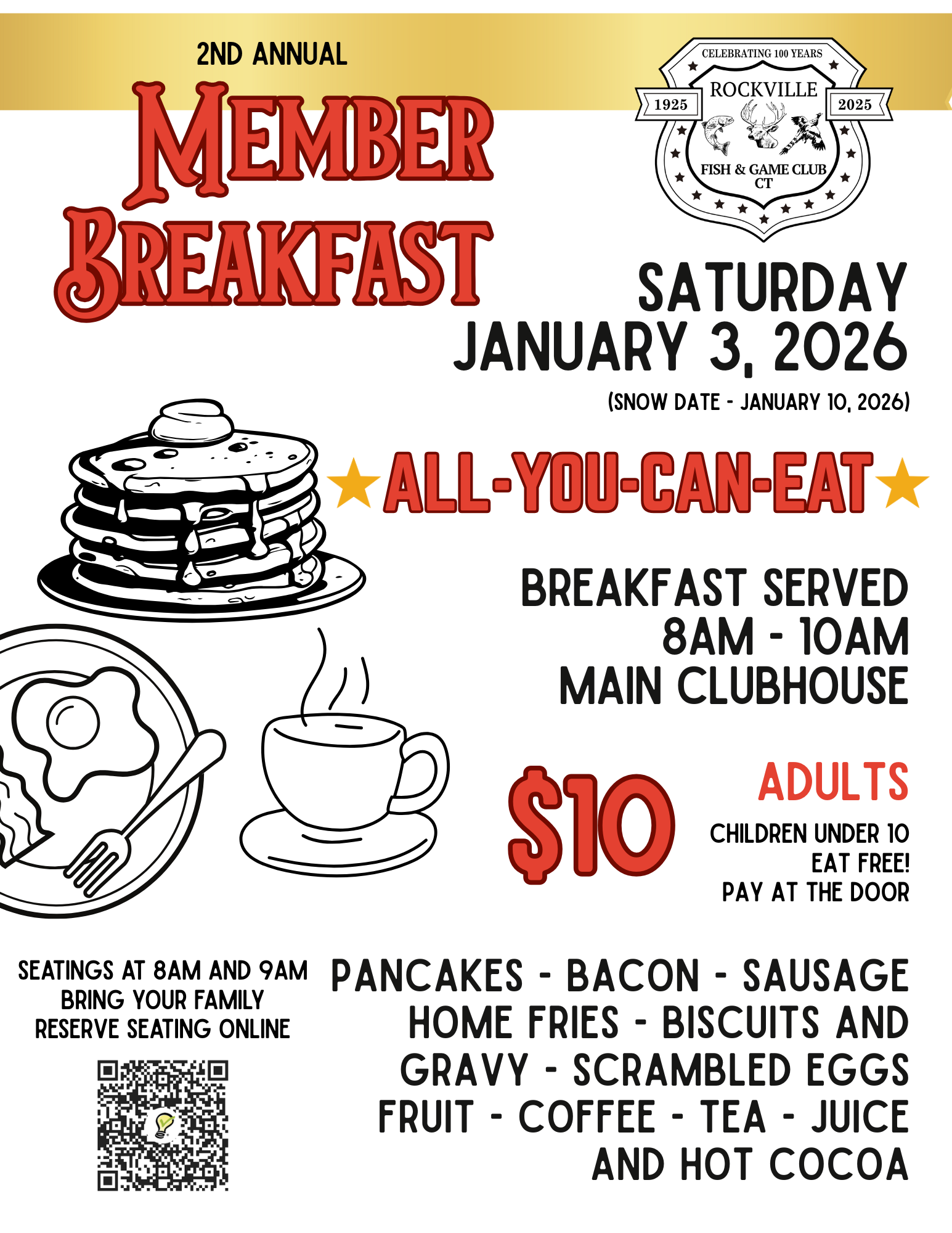 2nd Annual Members Breakfast – Breakfast served from 8AM to 10AM.